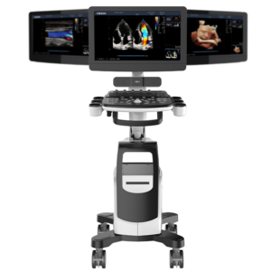 Аппарат имеет цветной 19 дюймовый LCD монитор на, клавиатуру с подсветкой. Для сохранения и дальнейшей передачи данных встроены USB порты, благодаря которым подключаются нужные накопители. При этом также можно отправлять данные по сети DICOM (опция). В ситуации отключения электроэнергии оборудование продолжит функционировать за счет аккумуляторной батареи, гарантирующей бесперебойную работу до 1,5 часов.